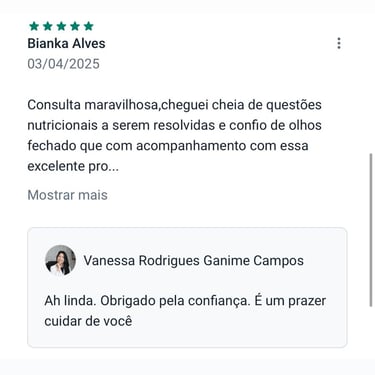 Sou a Dra. Vanessa Rodrigues Ganime Campos (CRN 24100730).